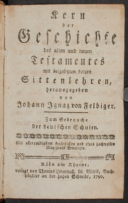 Kern der Geschichte des alten und neuen Testamentes mit beigesetzten kurzen Sittenlehren : zum Gebrauche der deutschen Schulen / herausgegeben von Johann Ignaz von Felbiger