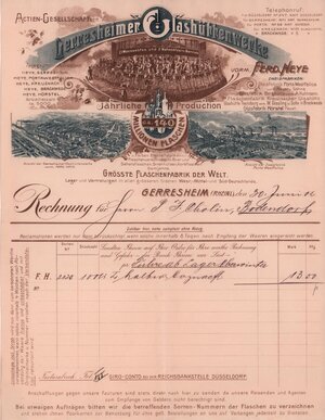 Lieferantenrechnung der Gerresheimer Glaswerke an Peter Josef Cholin vom 20.01.1902