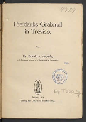 Freidanks Grabmal in Treviso / von Oswald v. Zingerle