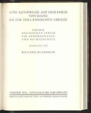 Eine Kunstreise auf dem Rhein von Mainz bis zur holländischen Grenze / bearb. von Richard Klapheck