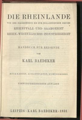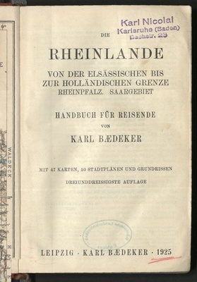 Die Rheinlande von der elsässischen bis zur holländischen Grenze : Rheinpfalz und Saargebiet, rhein.-westfälisches Industriegebiet ; Handbuch für Reisende / von Karl Baedeker