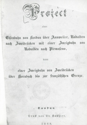 Project einer Eisenbahn von Landau über Annweiler, Rodalben nach Zweibrücken mit einer Zweigbahn von Zweibrücken über Hornbach bis zur franz. Grenze