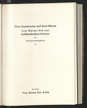 Eine Kunstreise auf dem Rhein von Mainz bis zur holländischen Grenze - Von Köln bis zur Grenze / bearb. von Richard Klapheck