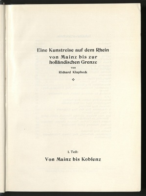 Eine Kunstreise auf dem Rhein von Mainz bis zur holländischen Grenze - Von Mainz bis Koblenz / bearb. von Richard Klapheck