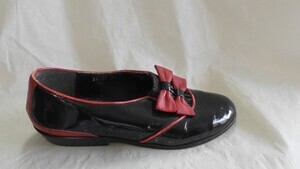 Schwarz-rote Damenhalbschuhe aus Lackleder mit Zierschleifen