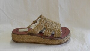 Beige Plateau-Pantolette aus Stoff