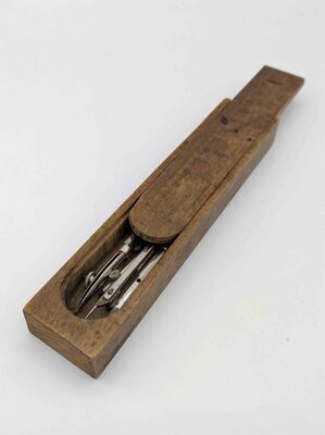 Griffeldose mit zwei Ebenen und Schreibfedern sowie zwei Federhaltern