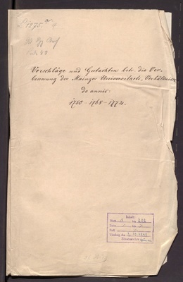 L 1275a - Vorschläge und Gutachten über die Verbesserung der Mainzer Universitätsverhältnisse. 56 Prod.
