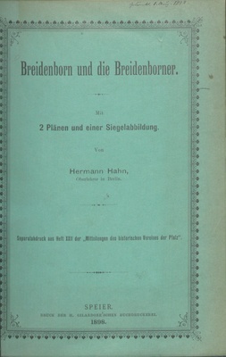 Breidenborn und die Breidenborner : mit 2 Plänen und einer Siegelabbildung / von Hermann Hahn