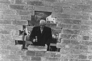 Bürgermeister Bauer beim Legen des Grundsteins des Volksschule