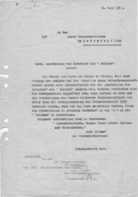 Kopie des Schreibens: Anerkennung von Bodendorf als "Heinbad"