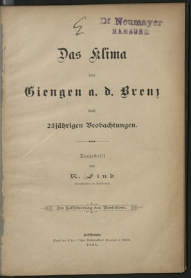 Das Klima von Giengen a. d. Brenz nach 23-jährigen Beobachtungen / R. Fink