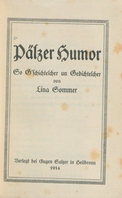 Pälzer Humor : so G'schichtelcher und Gedichtelcher / von Lina Sommer
