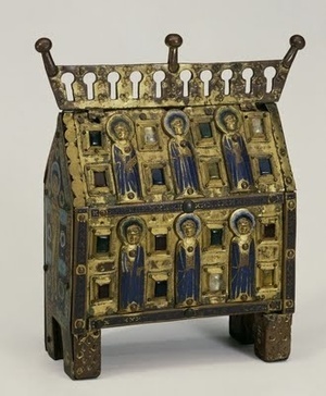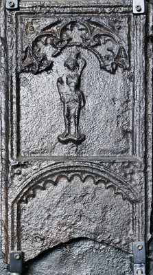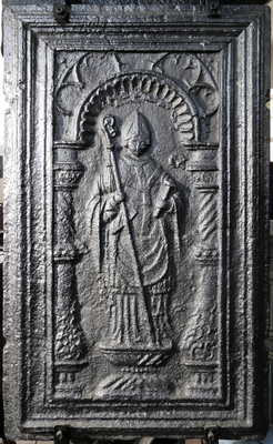 Takenplatte oder Kaminplatte mit Heiligenfiguren