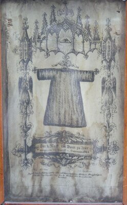 Seidenes Andenkenbild zur Ausstellung des Heiligen Rocks 1844