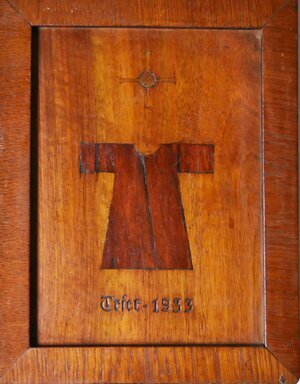Heiliger Rock, aus Jerseystoff ausgeschnitten und auf Karton geklebt