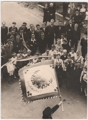 Junggesellenfähnrich beim Fahnenschwingen 1947