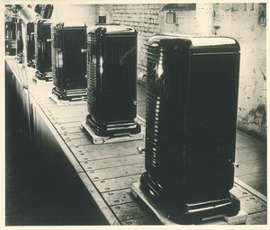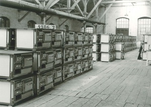 Schwarzer Herd für Bombengeschädigte aus Munitionsbehältern