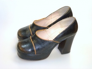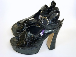 Sandaletten aus geprägtem Lackleder mit Plateau