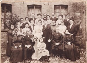 Gruppenporträt der Hochzeitsgesellschaft Paula und Walter Meynen