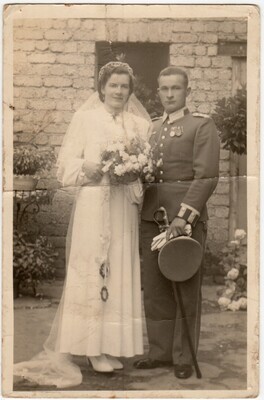 Hochzeitsfoto mit Offiziersstellvertreter um 1940