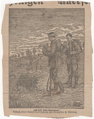 Zeitungszeichnung mit dem Untertitel "Ich hatt´ einen Kameraden"
