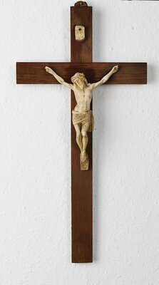 Holzkreuz mit christliche Kreuzigungsdarstellung