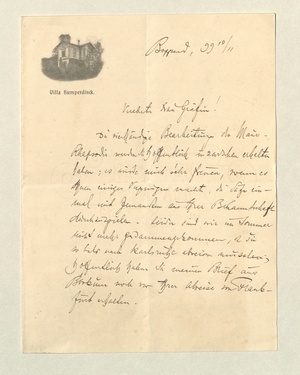 Brief von Engelbert Humperdinck an Marie Hanfstaengl