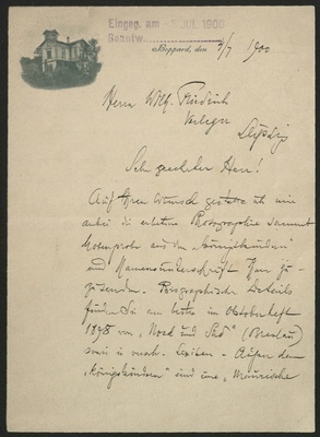 Brief von Engelbert Humperdinck an Adolph Fürstner