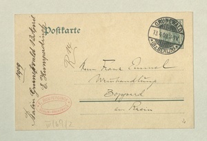 Eigenhändige Postkarte mit Unterschrift (Ansetzungssachtitel von Bearbeiter/in)
