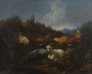 Campagna-Landschaft mit Hirtin und Ziegenherde