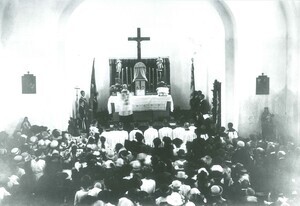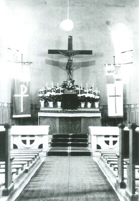 Innenansicht der evangelischen Medardus Kirche in Bendorf um 1935