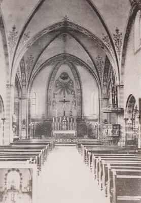 Innenansicht der katholischen Medardus Kirche in Bendorf um 1900