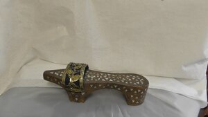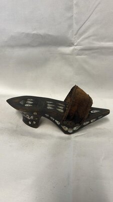 Damen-Pantolette aus Holz mit Perlmutt-Intarsien