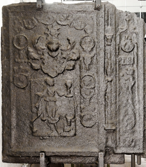 Rechte Seitenplatte; Allianzwappen Gustav Samuel Leopold von Pfalz-Zweibrücken - Gräfin Dorothea von Hofmann