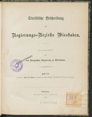 Statistische Beschreibung des Regierungs-Bezirks Wiesbaden - Jagd und Fischerei / bearb. von Adolf Tilmann / hrsg. von Königlicher Regierung zu Wiesbaden
