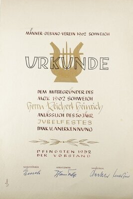 Urkunde: 50. Jubiläum des Männer-Gesang-Verein Schweich