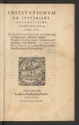 Institutionum D. Ivstiniani Sacratiss. Principis P.P. A. Libri IIII. / A Matthaeo VVesenbecio I.C. æditi, Argumentis atque Scholiis explicati