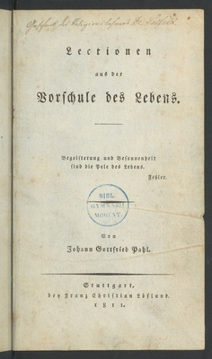 Lectionen aus der Vorschule des Lebens / von Johann Gottfried Pahl