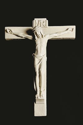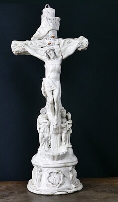 Weisses Keramik Standkreuz mit Weihwasserbecken
