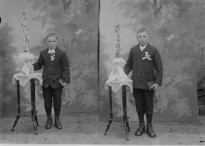 Foto Junge mit Kommunionsanzug und Kerze