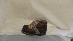 Dunkelbrauner Kinderstiefel in Größe 34 mit Stoßeisen.