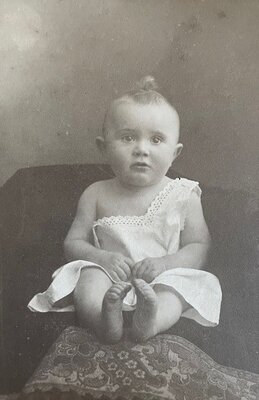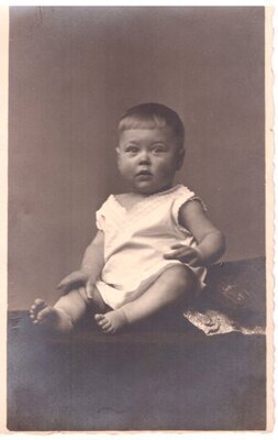 Foto Kleinkind im Fotoatelier auf einem Teppich
