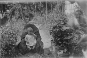 Foto Kleinkind mit großer Bäcker- oder Kochmütze