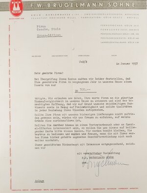 Schreiben an die Firma Geschwister Stolz (30.1.1957)