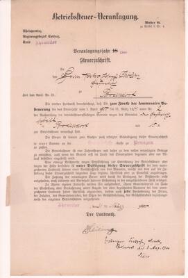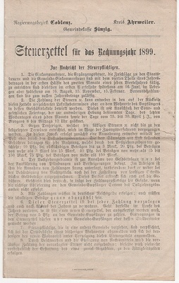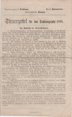 Steuerzettel für das Rechnungsjahr 1899 der Königlichen Steuer- und Gemeindekasse Ahrweiler