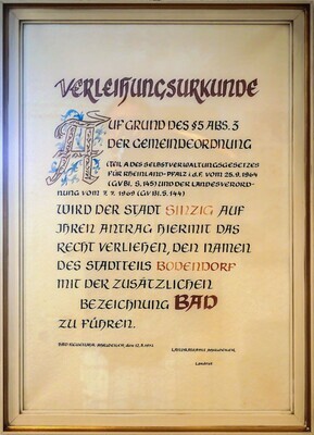Verleihungsurkunde Badtitel für Bodendorf/Ahr