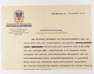 Dienstbescheinigung des Roten Kreuz: Waldemar Ostländer
