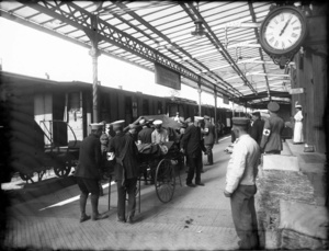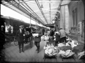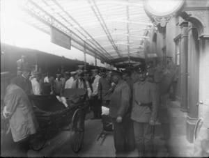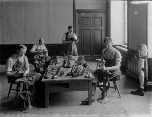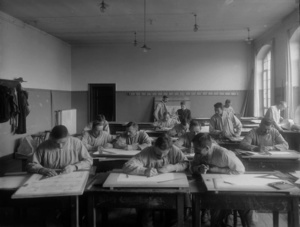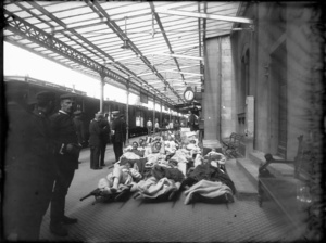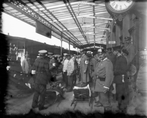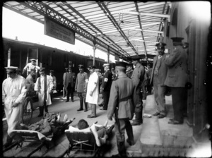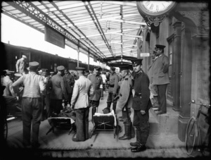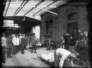 Fotografie "Kriegsverwundete im Innenhof des Museums"