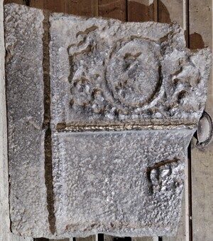 Kaminplatte mit Darstellung eines Schwertkämpfers